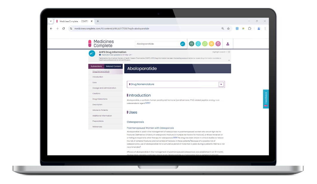 Our knowledge products are regularly updated online through MedicinesComplete
